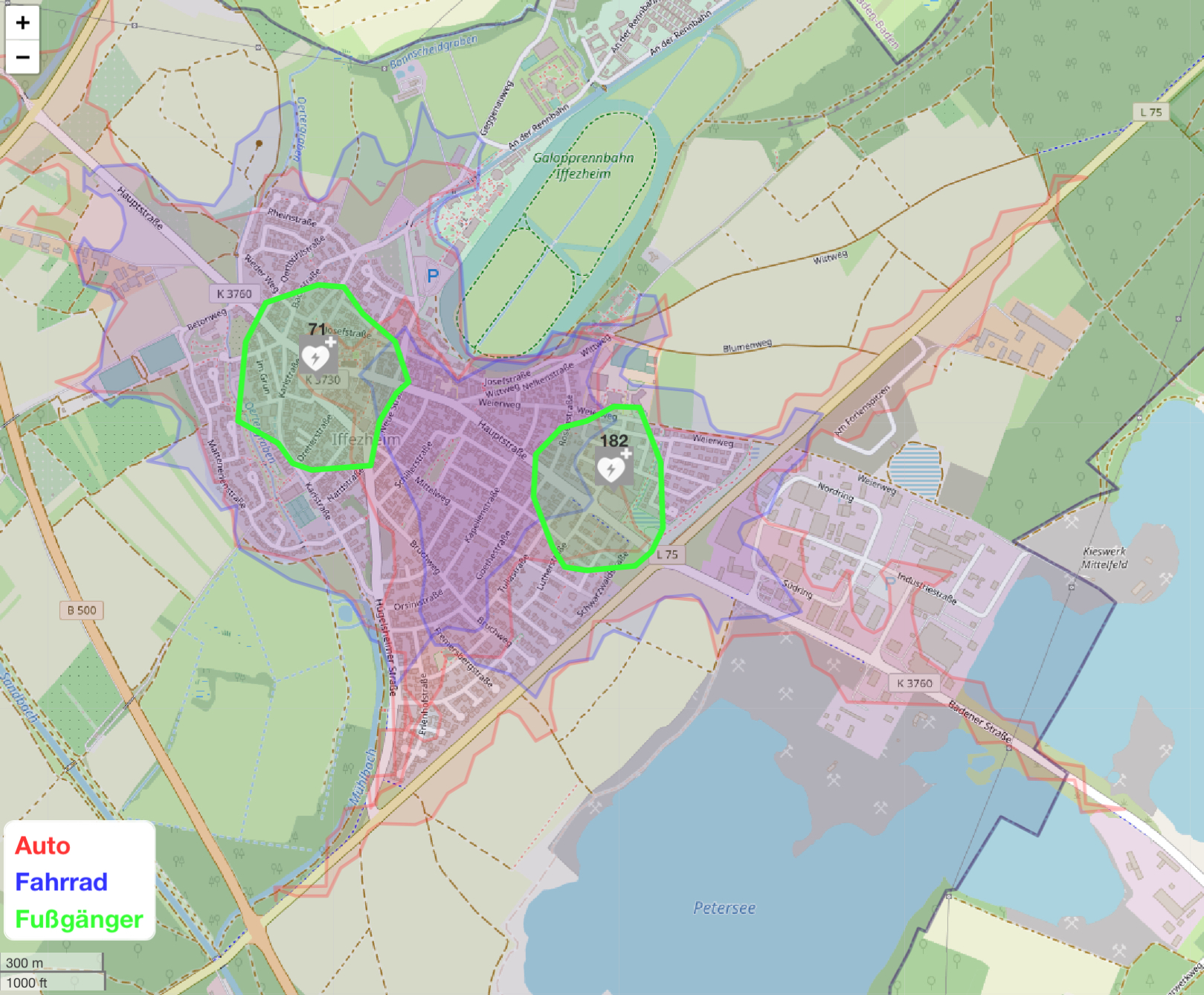 Ein entscheidender Faktor ist aber, mit welchem Verkehrsmittel der Ersthelfer unterwegs ist. Kann der AED mit dem Auto zugeführt werden oder mit dem Fahrrad, sind größere Abstände kein Problem.